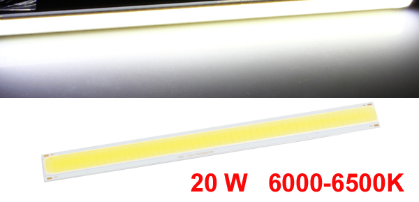 Color Temperature 6000-6500K power consumption 20W Material Electronic Parts Body Size 170 x 15 x 3mm/ 6.7" x 0.6" x 0.1"(L*W*T) Emitter Color Pure White Net Weight 15g Package Content 1 x COB LED Lamp Bead - Reviews