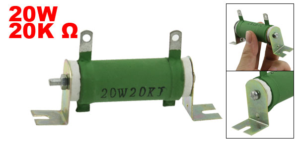 Product Name Wire Wound Resistor Type Fixed Type Rated Power 20W Resistance 20K Ohm Resistance Tolerance ±5% (J) Material Metal, Ceramic Screw Thread Dia 4mm/0.16" Hole Dia 3mm/0.12" Hole Distance(Center to Center) 4.3cm/1.7" Tube Size 6 x 2.1cm/2.3" x 0.6"(L*D) Total Length 9.3cm/3.6" Color As Picture Shown Weight 44g Package Content 1 x Wire Wound Resistor - Reviews