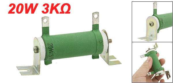 Product Name Wire Wound Resistor Type Fixed Type Rated Power 20W Resistance 3K Ohm Resistance Tolerance ±5% (J) Material Metal, Ceramic Screw Thread Dia 4mm/0.16" Hole Dia 3mm/0.12" Hole Distance(Center to Center) 4.5cm/1.7" Tube Size 6.2 x 2.1cm/2.4" x 0.8"(L*D) Total Length 9.2cm/3.6" Color As Picture Shown Weight 47g Package Content 1 x Wire Wound Resistor - Reviews