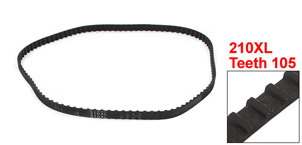 Details210XL 105 Teeth 6mm Width Black Rubber Cogged Industrial Timing Belt 21"  Product Name Timing Belt Type 210XL Number of Teeth 105 Pitch 5.08mm Belt Width 6mm / 0.24" Belt Girth 533.40mm /21" Material Rubber Color Black Weight 7g Package Content 1Pcs x Timing Belt