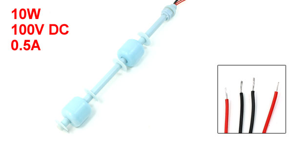 Product Name Float Switch Contacts NO+NC Max Contact Rating 10W Max Switching Voltage 100V DC Max Switching Current 0.5A Max Breakdown Voltage 220V DC Max Carry Current 1.0A Max Contact Resistance 100mΩ Temperature Rating -10 ~ +60 °C / 85 °C Float Ball Material PP Float Body Material PP Float Ball Size(Approx) 25 x 26mm / 1" x 1.1"(L*D) Thread Dia(Approx) 10mm / 0.39" Nut Dia(Approx) 14mm / 0.55" Bottom Clip Dia(Approx) 21mm / 0.85" Body Total Length 21.5cm / 8.5" Cable Length 39cm / 10.4" Color Blue Net Weight 33g Package Content 1 x Float Switch - Reviews
