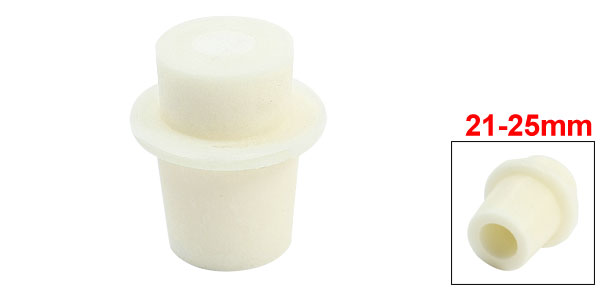 Details21mm-25mm 14mm Hole Dia Conical Flask Silicone Stopper Plug Beige  Product Name Silicone Stopper Material Silicone Color Beige Fit for 21-25mm Conical Flask Top. Dia 23mm/ 0.91" Bottom. Dia 21mm/ 0.83" Total Length 38mm/ 1.5" Weight 14g Package Content 1 x Silicone Stopper