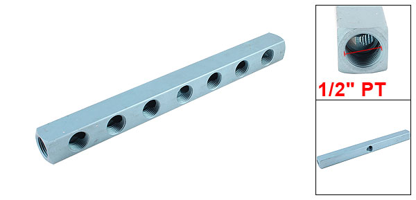 Product Name Manifold Block Thread Ports Quantity 10 Position Quantity 7 Color Teal Blue Material Aluminum Female Thread Size 1/2" PT Female Thread Dia. 21mm/ 0.8" Overall Size 300 x 29 x 29mm / 11.8" x 1.1" x 1.1" (L*W*H) Weight 364g Package 1 x Manifold Block - Reviews