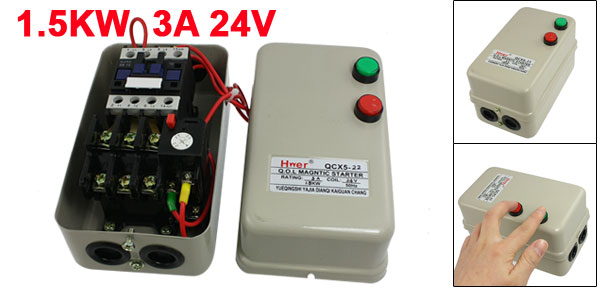 Product Name Motor Magnetic Starter Model QCX5-1.5KW Shell Material Metal Starter Coil:24VAC Rated Power:1.5KW / 2HP Rated Current:3A