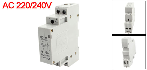 Product Name AC Contactor Model HC1-16 Rated Coil Voltage AC 220/240V Rated Current 16A Ue 250V Number of Poles 2 Mounting Type 35mm DIN Rail Mount Overall Size(Approx.) 82 x 28 x 65mm / 3.4" x 1.1" x 2.6"(L*W*T) Material Plastic, Electronic Parts Color Gray Net Weight 120g Package Content 1 x AC Contactor - Reviews