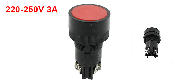 Product Name Push Button Switch Terminals Number 2 Contact Type Momentary Rated Voltage & Current 220-250V 3A Mounting Thread Dia 2.2cm/0.87" Total Size 5.5 x 3cm/2.2" x 1.2"(L*D) Material Plastic, Electric Parts Main Color Red, Black Net Weight 17 Package Content 1 x Push Button Switch - Reviews