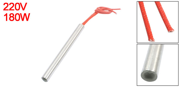 Product Name Cartridge Heater Material Metal, PVC Rated Voltage 220V Power 180W Heater Size (Approx.) 12 x 120mm / 0.47" x 4.7" (D * L) Wire Length (Approx.) 25cm /10" Color Red, Silver Tone Weight 58g Package Content 1 x Cartridge Heater - Reviews