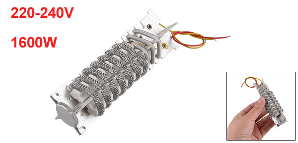 Product Name Heating Element Voltage 220-240V Power 1600W Size (Approx.) 4 x 3.5 x 11.5cm/ 1.6" x 1.4" x 4.5" (L*W*H) Cable Length 15cm/5.9" Material Ceramic, Mica, Metal Color Silver Tone Weight 62g Package Content 1 x Hot Air Gun Heating Element - Reviews