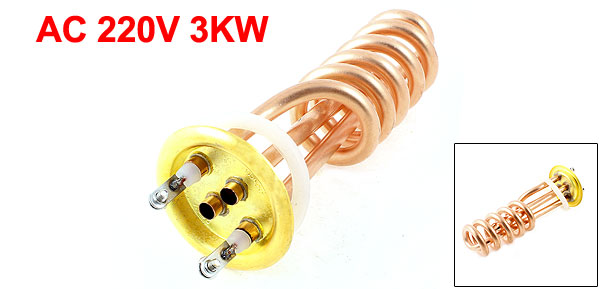 Product Name Water Heater Element Main Material Copper Rated Voltage AC 220V Power 3KW Tube Diameter 8mm / 0.31" Overall Size(Approx.) 18 x 4.5cm/ 7.1" x 1.77"(L*D) Screw Dia 4mm/ 0.16"