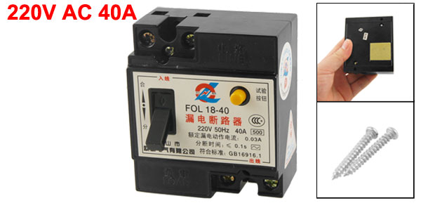 Product Name Residual Current Circuit Breaker Model No. FOL 18-32 Rated Voltage 220V AC, 50Hz Rated Circuit Breaking Capacity 0.03A Rated Current 40A Poles 2P Rated Residual Operating Current(I ^n) 30mA Residual Current Off-time ≤ 0.1s Mounting Hole Diameter 4.2mm / 0.16" Total Size (Approx.) 78 x 68 x 42mm / 3" x 2.67" x 1.65"(L*W*H) Color Black, Yellow Material Plastic, Electronic Parts Net Weight 172g Package Content 1 x Residual Current Circuit Breaker