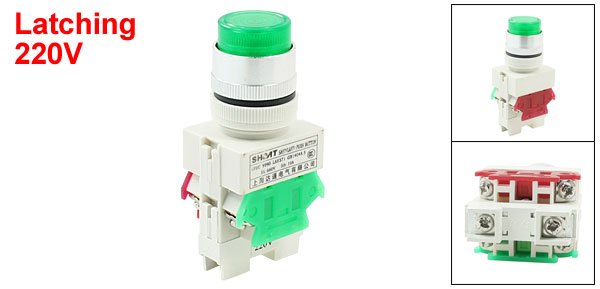 220V LED Illuminated Green Locking Pushbutton Switch DPST 660V 10 Amp