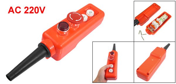 Product Name Hoist Pushbutton Switch Model No. COB COJ2137 Button Latching Red Sign Emergency Stop Button, Momentary Red Light, Up and Down Push Button IEC 337 Lamp Voltage AC 220V Ui 660V Ith 10A Main Body Size 20 x 5.8 x 6.5cm / 7.9" x 2.3" x 2.6"(L*W*H) Insulating Tube Length 10.2cm / 4" Fit Cable Diameter 1.1cm / 0.43" External Material Plastic, Rubber Color Orange Red, Black Net Weight 355g Package Content 1 x Hoist Pushbutton Switch - Reviews