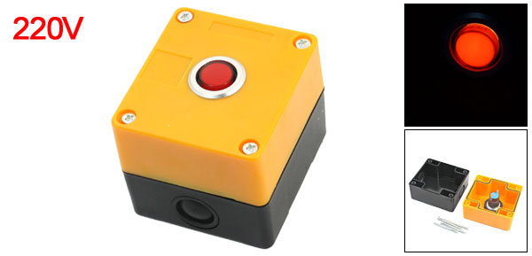 220V Yellow Plastic Case Red Signal Indicator Light Lamp Station Box