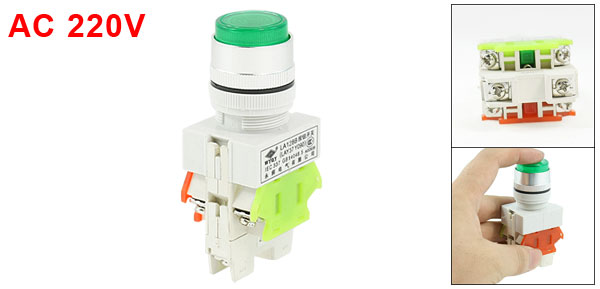 Product Name Push Button Switch Type Self Lock Contact Type 1NO, 1NC Ith 10A Ui 660V Terminal Quantity 6 LED Light Color Green LED Light Voltage AC 220V Panel Cutout Diameter 24mm / 0.94" Fit Panel Max. Thickness 6.7mm / 0.64" Total Size(Approx) 8.3 x 3.5 x 3cm / 3.2" x 1.4" x 1.2" (L*W*H) External Material Plastic, Electric Parts Color White, Green Net Weight 60g Package Content 1 x Push Button Switch - Reviews