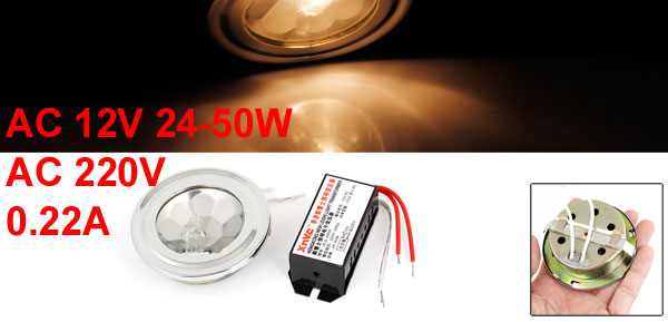 Product Name Electronic Transformer Input Voltage AC 220V Output Voltage AC 12V 24-50W Current Rate 0.22A Material Plastic, Electronic Part Size 66 x 28 x 22mm/ 2.6" x 1.1" x 0.87" (L*W*T) Cable Length 7cm/2.75" Weight 52g Package Content 1 x Electronic Transformer - Reviews