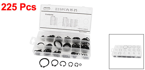 225 x Internal External Circlip Snap Ring Assortment Set w Storage Box