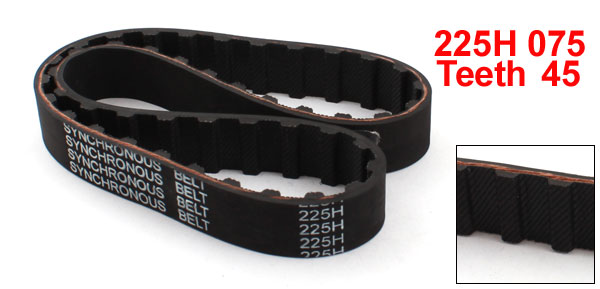 Product Name Timing Belt Model 225H 075 Number of Teeth 45 Code Number 075 Teeth Pitch 12.7mm/ 0.5" Belt Width 19.1mm / 0.75" Pitch Length 571.5mm/ 22.5" Material Rubber Color Black Weight 63g Package Content 1 x Timing Belt - Reviews