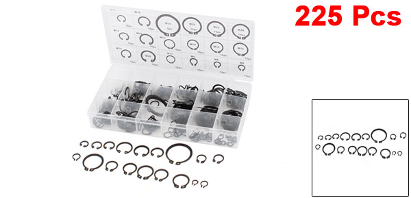 225Pcs Black Metal Retaining Ring Circlip Internal External Fastener Set