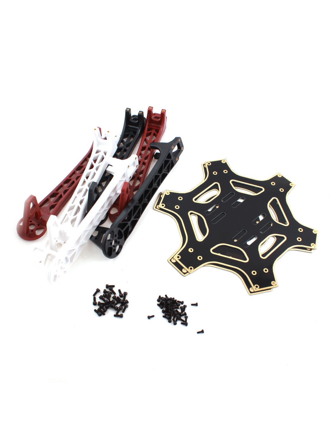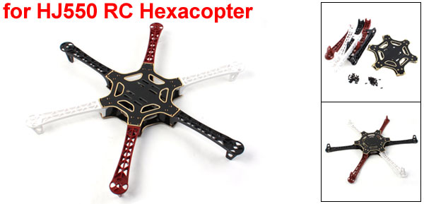 Product Name 6-Axis Multirotor Frame Set for for HJ550 RC Hexacopter Flame Wheel Frame Size 21.5 x 4 x 5.5cm/8.5" x 1.6" x 2.2"(L*W*H) Frame Plate Size 22 x 0.15cm/8.7" x 0.06"(D*T) Fixing Hole Dia 3mm/0.12" Material Metal Color Black, White, Red Net Weight 152g Package Content 6Pcs x Flame Wheel Frame