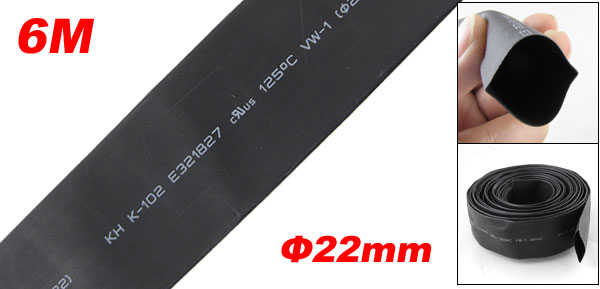 Details22mm Black Polyolefin Insulation Heat Shrink Tubing 6M 19.7ft  Product Name Heat Shrinkable Tube Material Polyolefin Rated Voltage 600V Temperature Level 125°C Flammability VW-1 Diameter 22mm / 0.8" (Before Shrinking) 11mm / 0.4"(After Shrinking) Shrink Ratio 2:1 Length (Approx.) 6 Meters / 236.2" / 19.7ft Color Black Weight 215g Package Content 1 x Heat Shrinkable Tube
