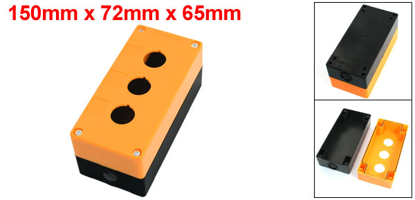 22mm Dia 3 Hole Pushbutton Switch Control Box Orange Black 150x72x65mm