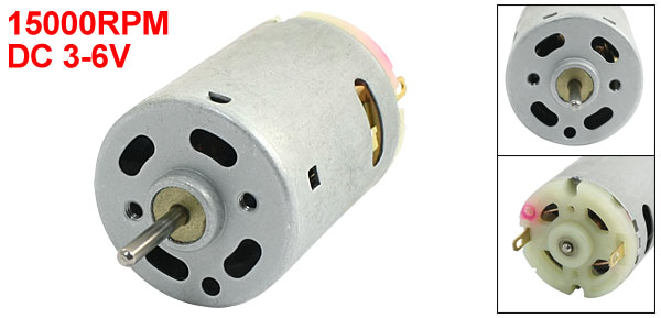 Product Name Micro DC Motor No Load Speed 15000RPM Voltage DC 3-6V Shaft Size 2.2mm/ 0.09" Body Size 38 x 28mm/ 1.5" x 1.1"(L*D) Main Color Silver Tone Material Metal Weight 63g Package 1 x Micro DC Motor - Reviews