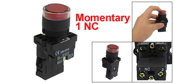 22mm NC Red Illuminated Light Momentary Push Button Switch AC 220V ZB2-EW3462