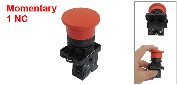 22mm NC Red Mushroom Momentary Push Button Switch 600V 10A ZB2-EC42