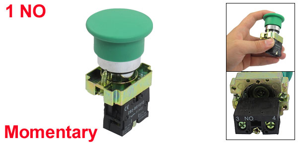 22mm NO Green Mushroom Momentary Push Button Switch 600V 10A ZB2-BC31
