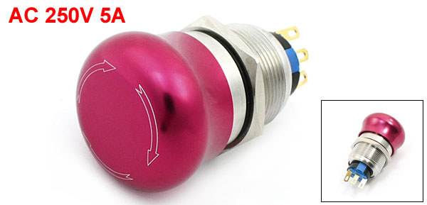 22mm SPDT Locking Stainless Steel Emergency Stop Push Button Switch AC 250V 5A