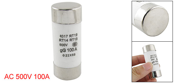 Product Name Cylindrical Fuse Link Model No. RO17 Material Metal, Ceramic, Electronic Parts Rated Voltage AC 500V Rated Current 100A Dimensions 22 x 58mm/0.87" x 2.28" (Dia*L) Main Color White, Silver Tone Weight 43g Package Content 1 x Cylindrical Fuse Link - Reviews