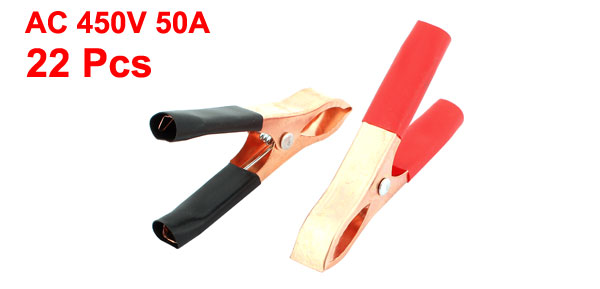 22PCS Copper Plated Car Battery Test Alligator Clip Red Black AC 450V 50A