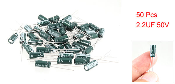 Product Name Electrolytic Capacitor Type Radial Maximum Temperature 85°C Voltage 50V Capacitance 2.2uF Number 50 ± 2% Pcs Size 34 x 5mm/ 1.3" x 0.2" (L*D) Lead Space 2mm Lead Length 23mm, 18mm External Material Aluminum Total Net Weight 21g Main Color As Picture Show Package Content 50 Pcs x Electrolytic Capacitors  - Reviews