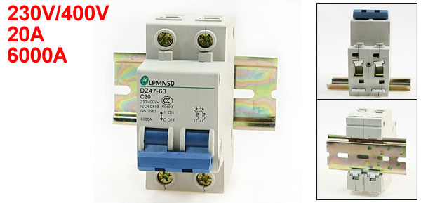 230/400V 20A DZ47-63 Dual Phase 6000A Overload Circuit Breaker w Lead Rail