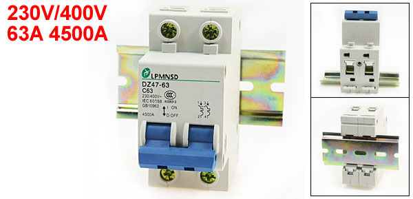 230/400V 63A DZ47-63 Dual Phase 4500A Overload Circuit Breaker w Lead Rail