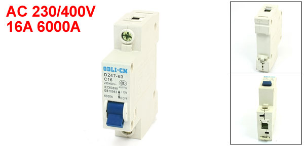 Product Name Circuit Breaker Model DZ47/63 C16 Rated Current 16A Rated Voltage 230/400VAC Rated Circuit Breaking Capacity 6000A Number of Poles 1 Mount Type 35mm DIN Rail Total Size (Approx.) 72 x 18 x 79mm/ 2.8" x 0.7" x 3.1" (L*W*H) Material Plastic, Electric Components Weight 76g Package Content 1 x Circuit Breaker - Reviews