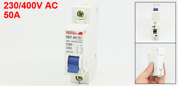 Product Name Circuit Breaker Model No. DZ47-63/1P C50 Exrternal Material Plastic, Metal Rated Voltage AC 230/400V 50Hz Rated Current 50A Breaking Capacity 4KA Total Size (Approx.) 77 x 65 x 18mm/ 3" x 2.6" x 0.7" (L*W*T) Number of Poles 1 Mount Type 35mm DIN Rail Mounted Net Weight 99g Package Content 1 x Circuit Breaker - Reviews