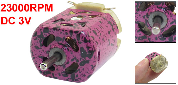 Product Name DC Motor Rated Voltage DC 3V Speed 23000RPM Shaft Size 2 x 8mm/ 0.08" x 0.3"(D*L) Body Size 20 X 15 x 25mm/ 0.8" x 0.6" x 1"(L*W*H) Main Color Fuchsia Material Metal Net Weight 16g Package 1 x DC Motor - Reviews