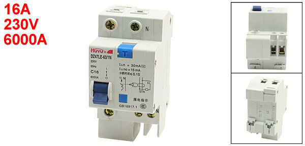 Product Name Circuit Breaker Model DZ47LE-63/1N Rated Current 16A Rated Voltage 230V Rated Circuit Breaking Capacity 6000A Number of Poles 2 Mount Type 35mm DIN Rail Total Size (Approx.) 9.3 x 7.3 x 4.5cm/3.6" x 2.9" x 1.8"(L*W*H) Material Plastic, Electric Components Weight 215g Package Content 1 x Circuit Breaker - Reviews