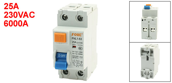 Product Name Circuit Breaker Model FNL1-63 Rated Current 25A Rated Voltage 230VAC Rated Circuit Breaking Capacity 6000A Number of Poles 2 Mount Type 35mm DIN Rail Total Size (Approx.) 8 x 7.3 x 3.5cm/3.15" x 2.9" x 1.4"(L*W*H) Material Plastic, Electric Components Weight 220g Package Content 1 x Circuit Breaker - Reviews