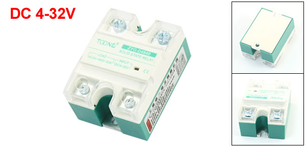 Product Name Solid State Relay Type ZYG-D4840 Input DC 4-32V Output AC 24-480V 40A Relay Size 6 x 4.4 x 3.2cm/ 2.4" x 1.8" x 1.2"(L*W*T) Material Metal, Plastic, Electric Parts Main Color Silver Tone, White, Blue, Clear Weight 105g Package Content 1 x Solid State Relay - Reviews