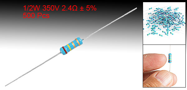 Product Name Carbon Film Resistors Withstand Voltage 350V Power Rating 1/2 W Resistance Tolerance 5% Resistance 2.4 Ohm Diameter 2.5mm/0.1'' Total Length(Approx.) 55mm/2.2'' Color As Picture Show Weight 123g Package Content 500 Pcs(± 2%) x Carbon Film Resistors - Reviews