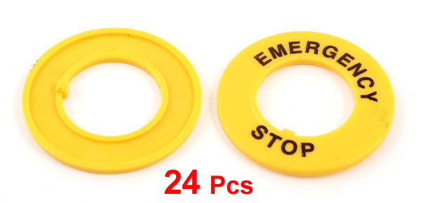 Product Name Protective Cover Fit for Round Switch Head Diameter 22mm / 0.9" Pattern EMERGENCY, STOP Total Size (Approx) 60 x 2mm / 2.4" x 0.08" (D*T) Material Plastic Color Yellow Weight 120g Package Content 24 x Protective Cover