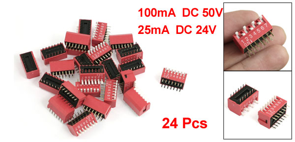 24 Pcs 2.54mm Pitch 7 Positions Sliding DIP Switches