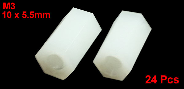 Product Name Hexagonal Threaded Spacer Thread Size M3 Total Size 10 x 5.5mm / 0.39" x 0.22" (H*D) Material Nylon Color White Net Weight 6g Package Content 24Pcs x Hexagonal Threaded Spacer - Reviews