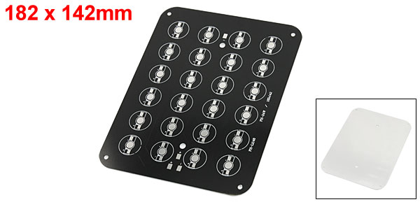 Product Name LED Aluminum Base Plate Fit for 24 x 1W/3W/5W LED in Series Size 182 x 142mm / 7.2" x 5.6"(L*W) Thickness 1.4mm / 0.05" Installation Hole Dia Big One: 5mm / 0.20"