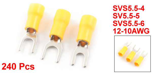 240 Pcs Yellow Pre Insulated Fork Terminal Cable Connector 12-10AWG 6.4mm