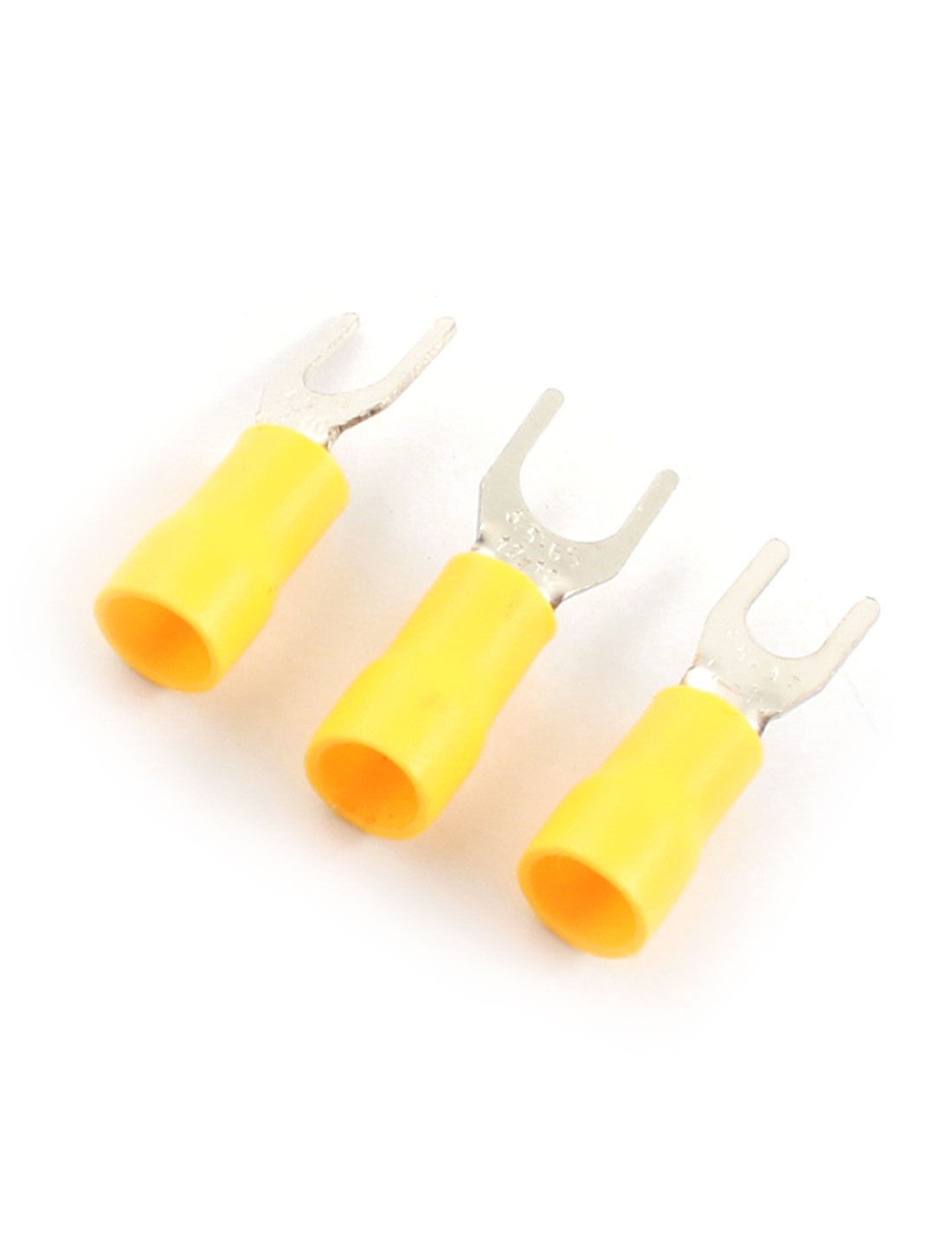 SVS5.5-6Fit Cable Size 4-6mm2 (12-10AWG) Hole Dia 6.4mm/0.25" Fork Spacing 4.3mm, 5.3mm, 6.5mm Total Length 25mm/ 1'' Max. Current 48A Material PVC Plastic, Metal Color Yellow Weight 237g Package Content 240 Pcs (±2%) x Fork Terminal - Reviews