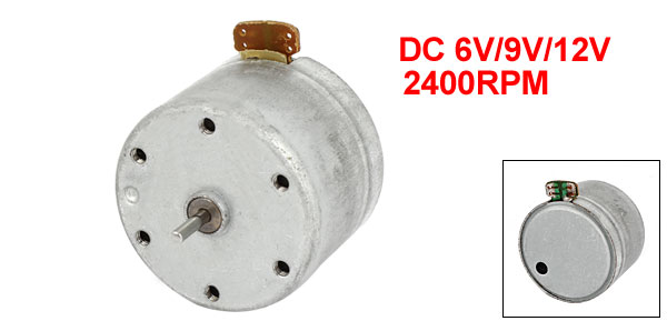 Product Name DC Micro Motor Rated Voltage DC 6V/9V/12V Speed(no load) 2400RPM Body Size 33 x 25mm / 1.3" x 1" (D*H) Shaft Dia. 2mm/ 0.08" Total Length 35mm / 1.4" Main Color Gray Material Metal Weight 59g Package 1 x DC Micro Motor - Reviews