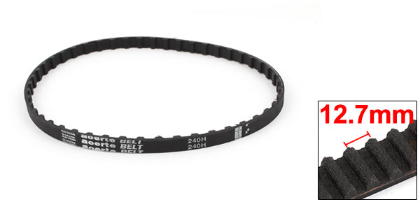 Product Name Timing Belt Model 240H Number of Teeth 48 Pitch 12.7mm / 0.5" Tooth Height 2.29mm / 0.09" Tooth Width 6.12mm / 0.24" Belt Width 10mm / 0.4" Belt Girth 609mm/ 2Ft/ 24" Total Height 4.3mm/0.17" Belt Material Neoprene (Synthetic Rubber) Core Wire Material Glass Fiber Color Black Net Weight 30g Package Content 1 x Timing Belt - Reviews